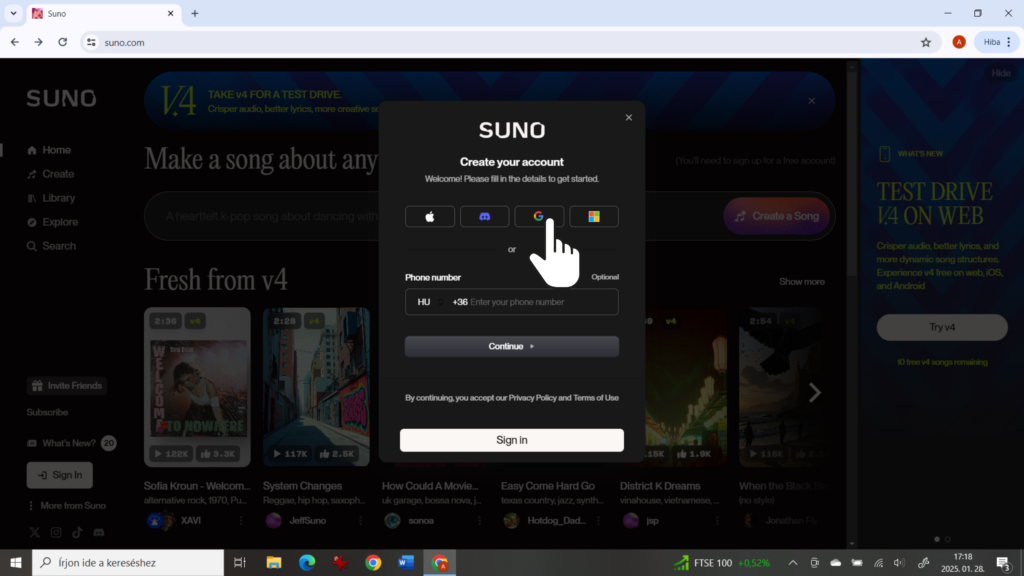 Jelentkezz be a Suno AI-ba 3 lépésben!